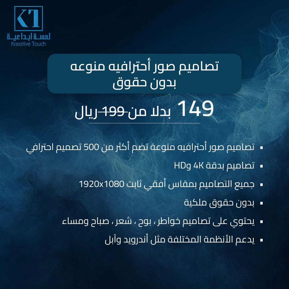 - مواصفات تصاميم منوعة – صور احترافية:اسم المنتج: تصاميم صور احترافية منوعة بدون حقوق.